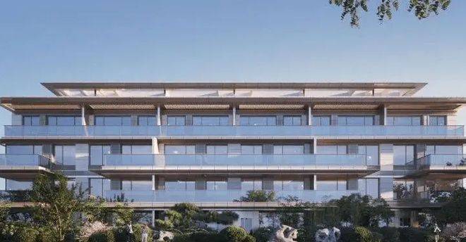 从以上就能看出项目是奔着高端改善去的,为了营造更纯粹的氛围,还有更多的升级之处。外立面用材主打石材干挂(干挂石材价格昂贵,高档大气,足以对其他普通材料立面的项目带来降维打击),木纹铝板,以及三玻两腔low-e中空玻璃,驱车路过看一眼就会觉得非常高级。