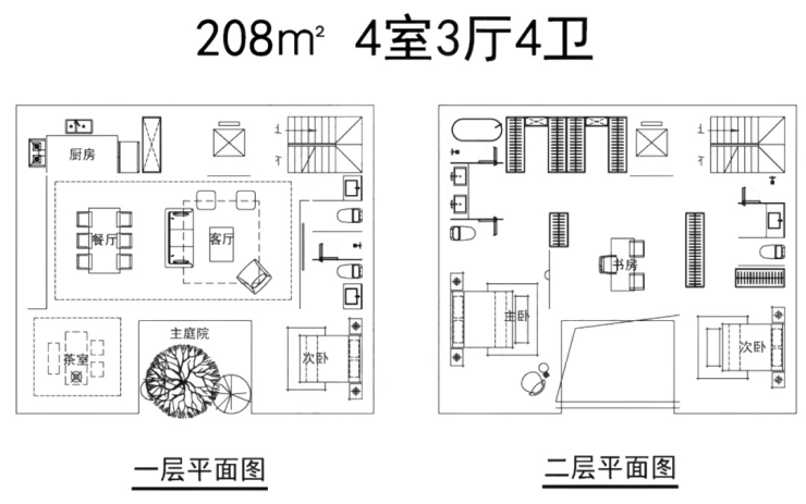 一层:独门独院入户,打造独栋式归家仪式感。会客厅、厨房与灵动空间构成家庭社交核心,大面积落地窗成点睛之笔,最大限度引光入室。预留大面宽耳房可改造为独立套间,满足多样化需求;1-3 层贯通梯与电梯井(预留)设计,最大化减少空间浪费。