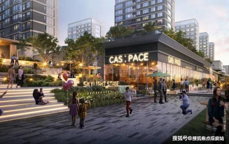 跨过东西两大地块的天桥,就能到达10m之上的跃城街区,左右烟火气瞬间充斥眼球,顺便去餐厅饱餐一顿,在通过近40米的IMAX天光舞台走上17m上的住区,回头就能看到城市全景,恢弘感十足。抵达社区后,迎面而来的宁静开阔感就能瞬间让您进入洋房住区。