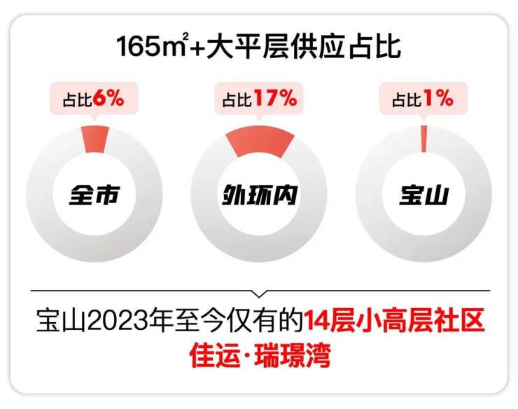 更神奇的是在宝山,2023年有建面约165平以上户型供应的仅佳运·瑞璟湾一盘。(剔除了别墅)
