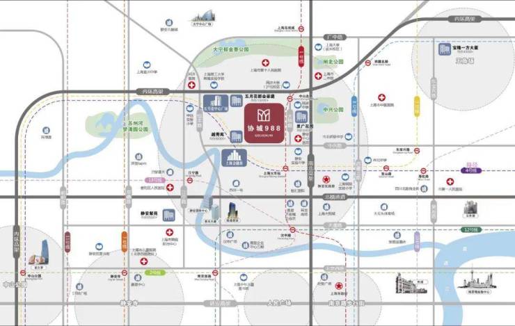 医疗配套:上海市中医院1.3公里(三甲),上海市第十人民医院1.9公里,上海市同济医院2.9公里(三甲),上海市第一人民医院2.9公里(三甲)等医疗配套交通配套: