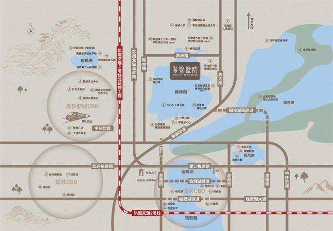 【城市路网】中环北线、苏州北站高架路、阳澄西湖第三隧道(在建)、常台高速等路网交错,直达姑苏古城区、园区等城市板块