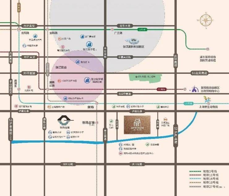 同润新云都会紧邻周边有16号线、S3沪奉高速以及沪芦高速。这三大交通配套,让业主咫尺张江。