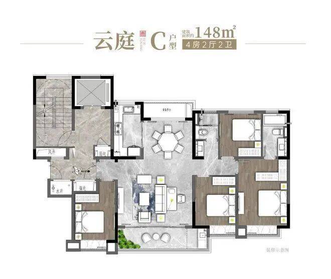 面积户型:约138㎡4房2厅2卫