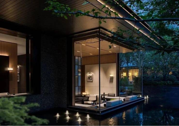 社区主入口更是兼具豪华酒店与海派元素设计风格,挑高约6米的入户大堂、水系景观与艺术家共创作品交相辉映,奢华感和高级感拉满!