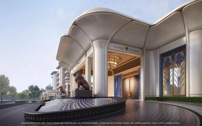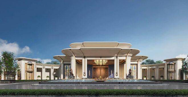 玉兰门庭」摩登飘逸,环抱式落客前场,大师定制非遗掐丝珐琅门钹,流转温润光华,敬呈归家尊崇礼序,自此启幕生活的华贵序章。