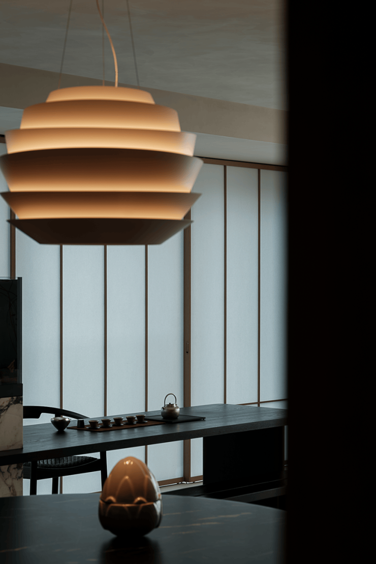 建筑立面融合宋韵风雅与现代美学,玻璃幕墙与金属线条勾勒轻盈质感,全明采光设计诠释塔尖圈层的生活仪式感。