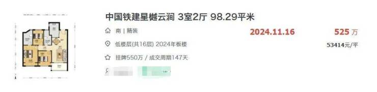 例如,星樾云涧去年一套98㎡的3房,甚至以5.3万/㎡的价格成交了!