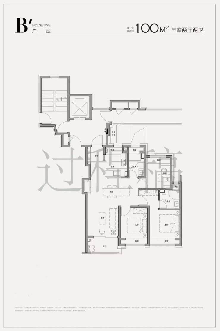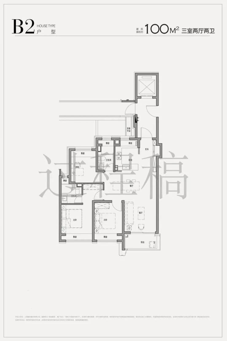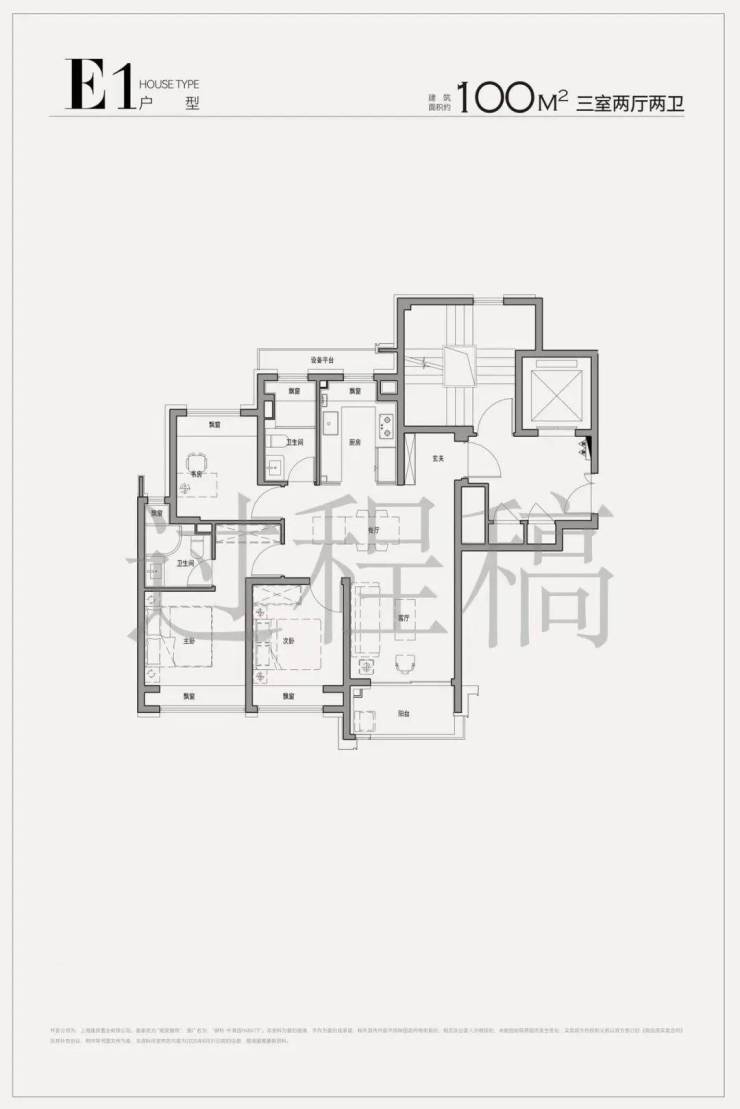 项目所有百平米户型都把传统过道融入到了客餐厅中,餐客厅更方正,面积比同级大约6㎡。