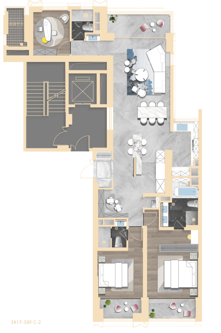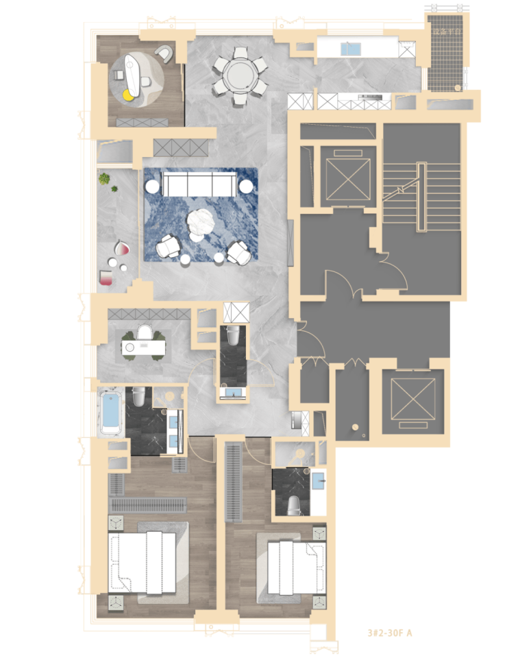 该栋楼拥有尊贵感、舒适度、使用率MAX的户型。建面约193、237㎡为类一梯一户设计,拥独立门厅;建面约302㎡标配两梯一户,排面和仪式感全部All in。主卧堪称星级套房,配置独立衣帽间、双台盆+淋浴空间+大浴缸。另外,安排多重收纳,让每一个空间都能高效利用。