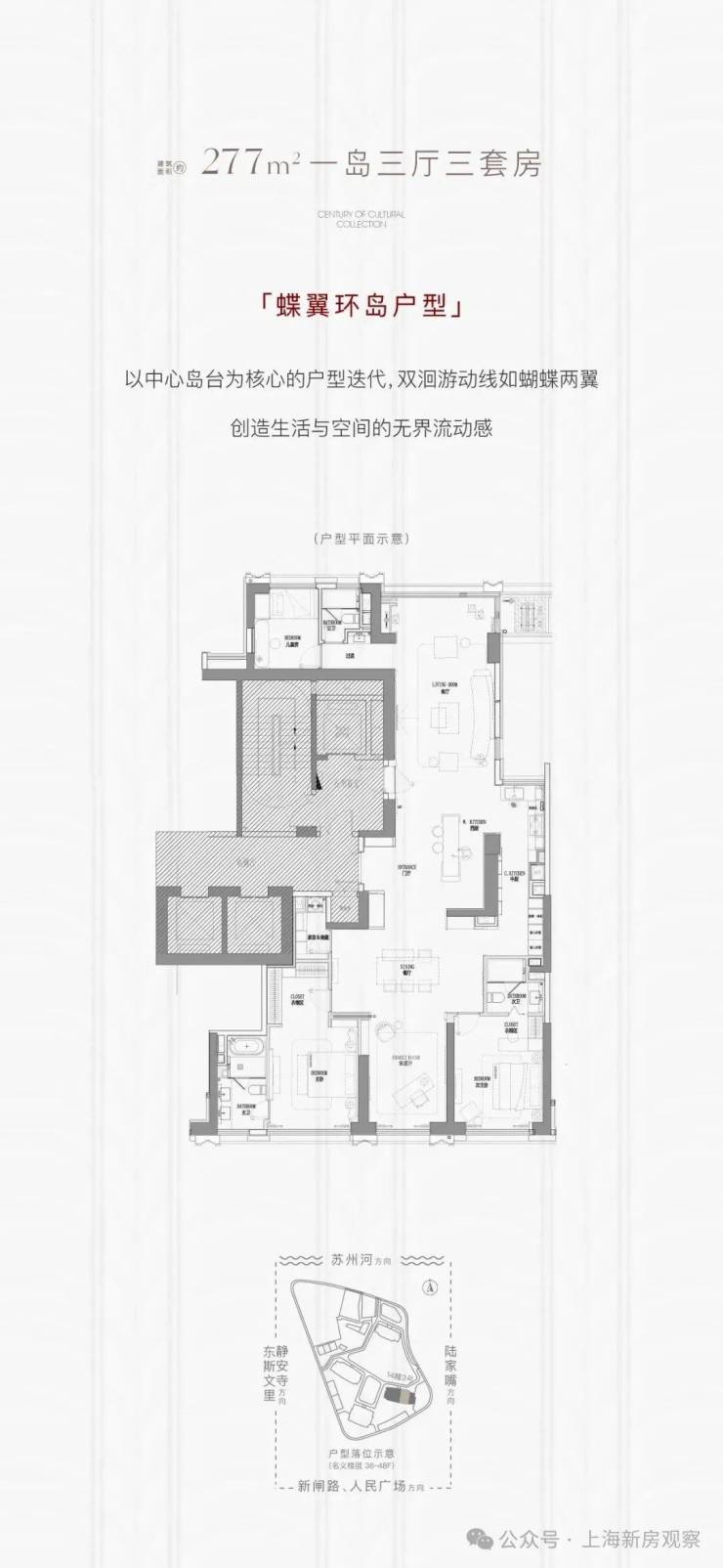 该栋楼南向可观3000㎡中央景观绿化;中间户型6层以上北可观苏州河景,且两侧都能看见苏州河景。可见4#大部分楼层都直面苏州河,这栋楼的景观视野放在当下新房市场是独一份的,只有48套,错过再无!