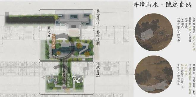 设计中,源引宋式建筑及园林意境,追溯典雅清逸的美学理念,将宋代建筑及构筑物特征进行现代化演绎,形成独特的符合现代审美的建筑风格及建筑空间。