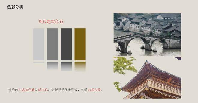 杭州古称钱塘,为南宋都城,宋朝在文化艺术领域的成就登峰造极,无论是在文学、绘画、建筑方面都有了质的飞跃,起到了承上启下的特殊地位。项目整体遵循宋代江南水乡的古城肌理,展现深宅贵府的隐奢调性,营造出“居山水、观天地”的空间意境。