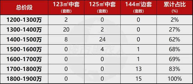 把上车门槛和改善天花板摆出来,你会更容易对号入座:门槛看123㎡,天花板看144㎡,中间用125㎡做参照。很多人纠结的根源不是“选不出来”,而是没有先把自己放进正确的价格区间里去看房。从总价段分布看,这批的可选空间其实不小,特别是123㎡中间套主导的预算区间(1240-1450万)。因为这段价格带既集中,又能挑楼层,还能把“中间套+高区”的组合打出来,形成体验和价格的双重优势。