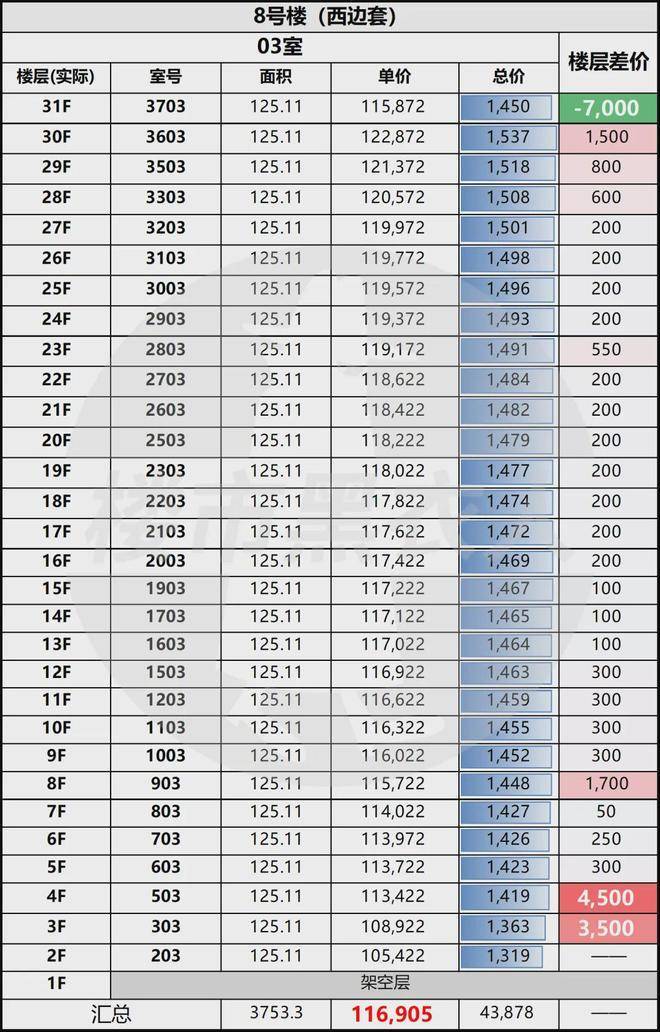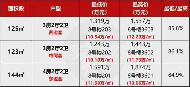 把8# 整栋的一房一价整体来看,你会发现它的定价并不是“均摊”而是很有方向感: