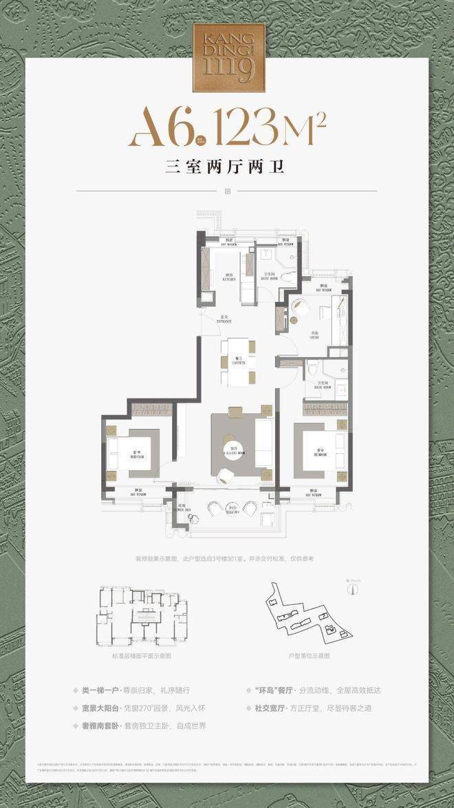 建面约120㎡3房2厅2卫▼
