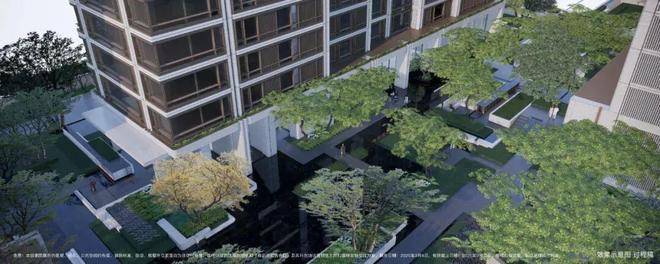 小区做了抬高处理,整体抬高,最高处超过7米,整个小区形成了错落的格局,在小区内部做台地景观。所谓台地,便是将小区内地面整体抬高,与市政道路形成一定的高度落差,这样建造的社区气势磅礴,居高临下。通过景观设计,将小区景打造成了立体台地花园,设置缓坡、下沉式花园、台阶等,让整体景观表现出立体层次感,错落有致。