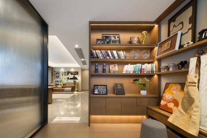 前排一线湖景楼幢约12.4米超大面宽四开间朝南。实体样板房的餐厅在做了双排餐边柜后,座位依然阔绰。厨房也非常自信的放入了双开门大冰箱,对喜欢屯各种生鲜食品、饮料的年轻人来说真是心头好。