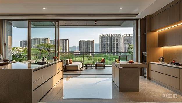 无论大小户型,厨房岛台都是标准配置,大面积岩板同样是交付标准;