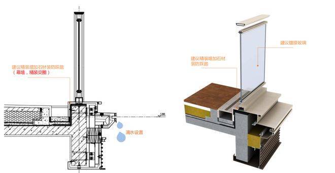 窗槛在阳台中起到防水、保温等功能外还应具备踩踏和抗冲击的能力,幕墙建议优化底部铝板造型为石材造型,提升品质感和耐久性。