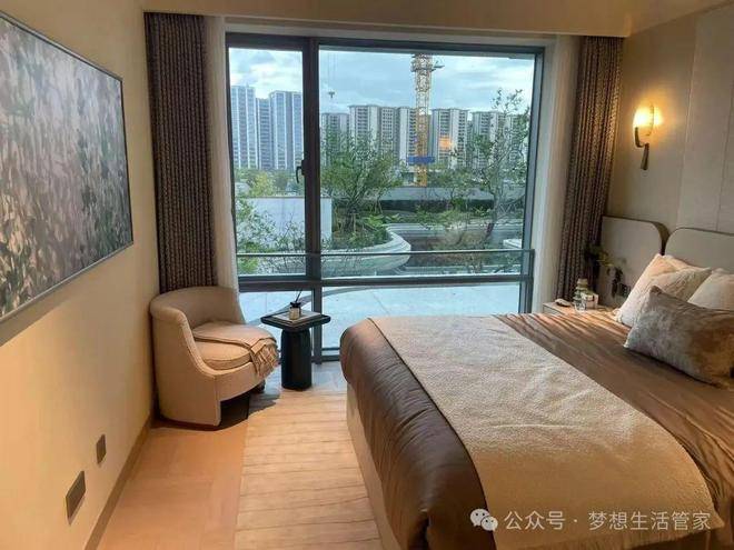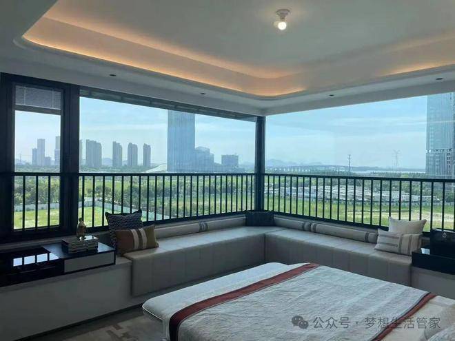 主卧就不用再说了,看现场,只能用眼馋来形容。每天早上起来,电动窗帘拉开第一眼是窗外美景、阳光(高楼层能看到江),再多的糟心事都会得到舒缓,想想都觉得这房子真可以。