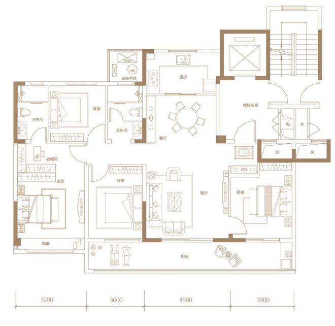 三开间阳台长达10.8米,是整个户型的点睛之笔。