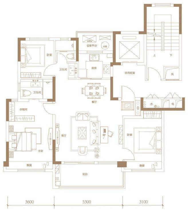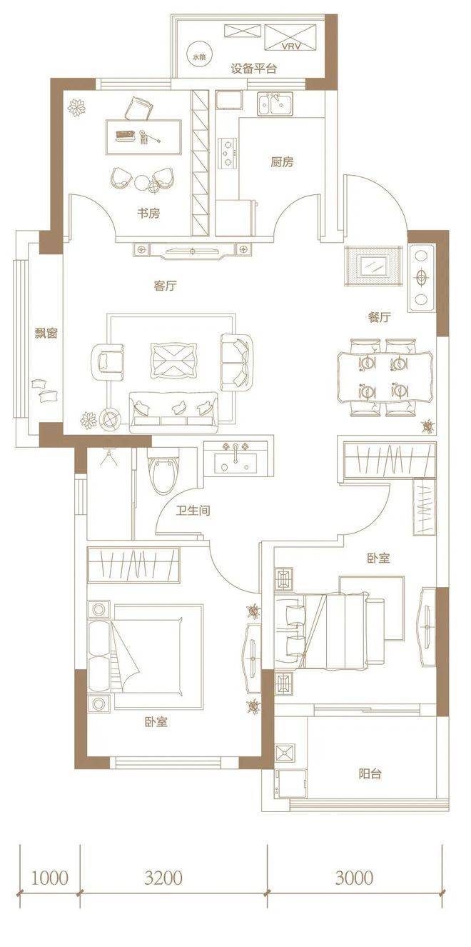 另一个主力三房户型,建面约103㎡,如果要为它的舒适度打分,几乎可以打满分。