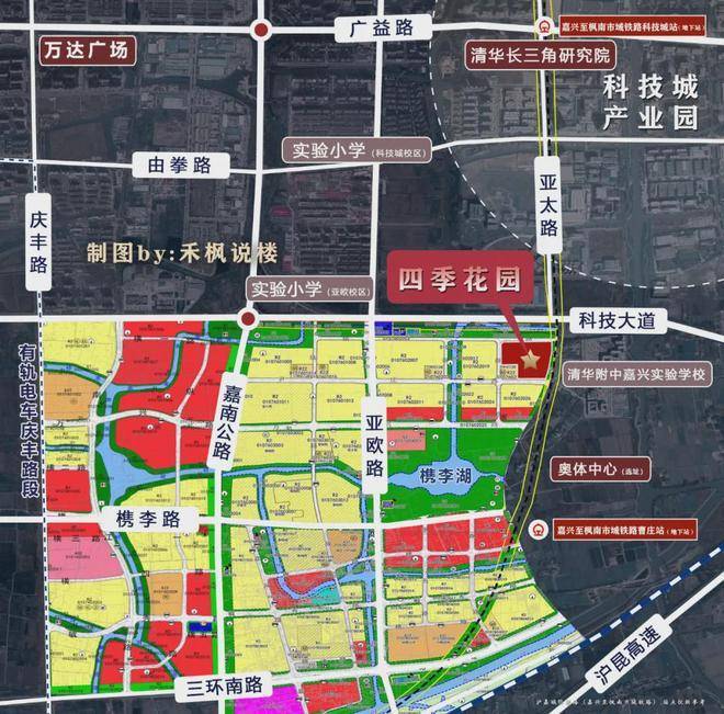 项目西侧,是贯穿整个科技城板块的主干道——亚太路,往北一路连接科技城产业园嘉兴至枫南市域铁路科技城站、科技城北翼、湘家荡板块。