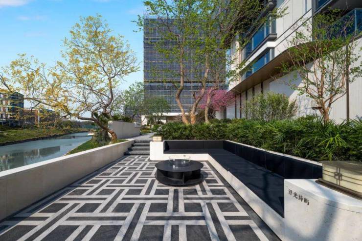 专属定制的精致奢石材料,迎宾水景,仪式感植物,传递惬意的轻松归家感。