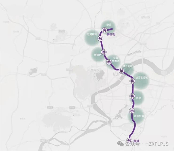直距约800米地铁15号线崇贤站(在建),一路串联运河新城、拱宸桥、江河汇、钱江世纪城等重要节点;