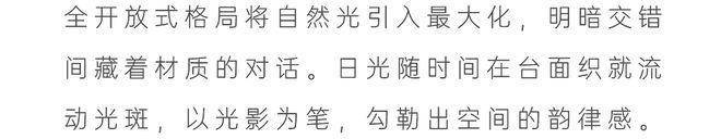整体以现代自然主义为基调,借自由开放的空间美学与个性家居布置,诠释简约松弛的生活哲学。