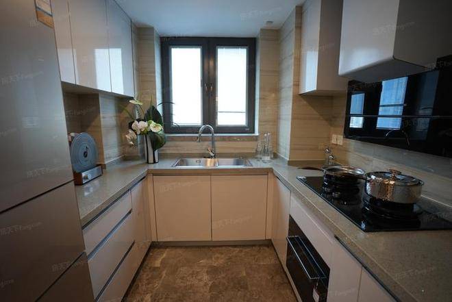 客厅主卧双开间朝南,带大面积阳台和飘窗,尺度感丝毫不虚。客厅餐一体化设计,公区尺度阔绰,厨房外接工作阳台,明厨明卫,通透性能良好。