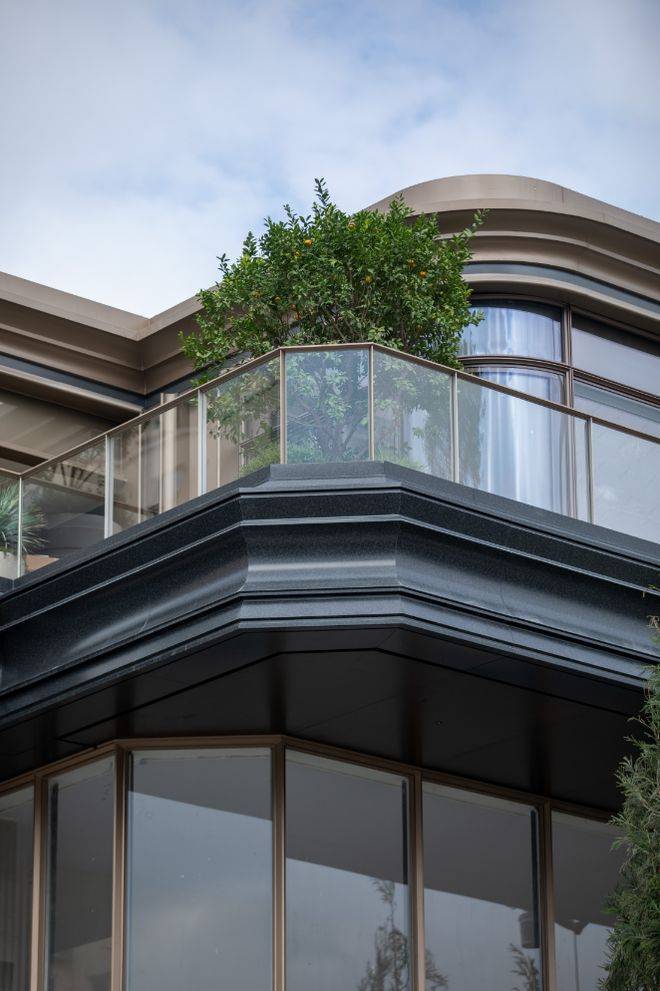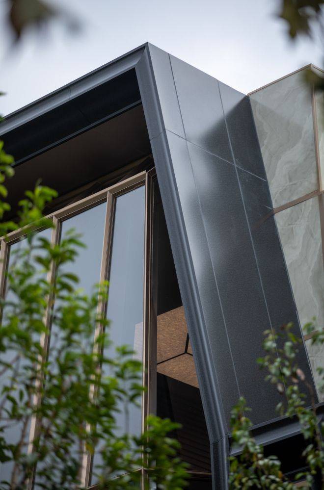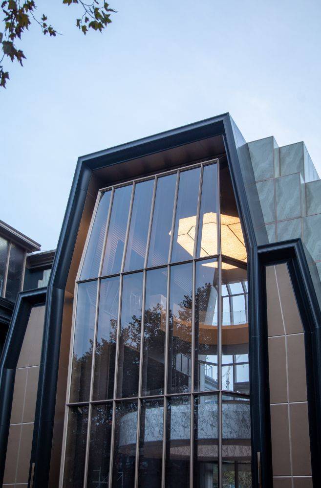 立面设计采用高奢商业街区的营造手法,既注重与周边环境的自然融合,又着力打造东安路沿线独有的精致奢感场域。石材肌理连绵起伏,形成丰富灵动的沿街天际线,更巧妙嵌入自然生态,未来出门就能citywalk。