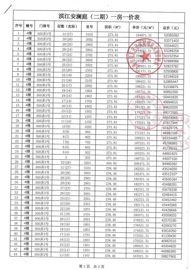 一房一价表