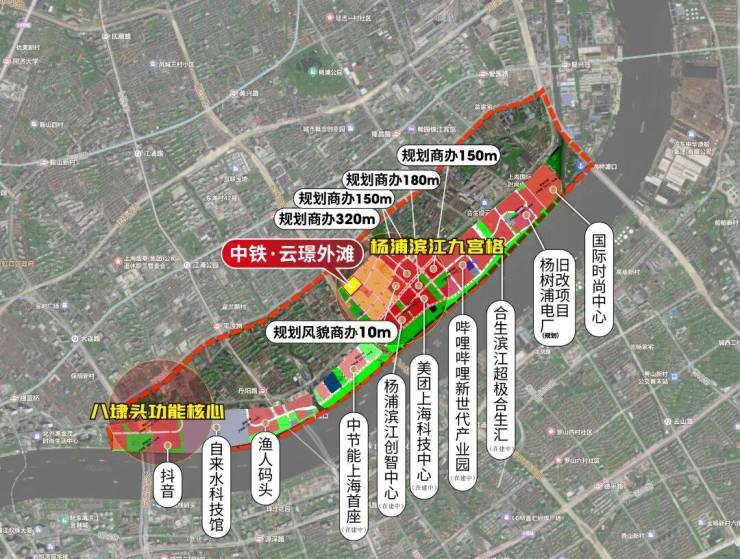 在产业蓬勃发展基础上,杨浦滨江九宫格配套布局堪称夺目。