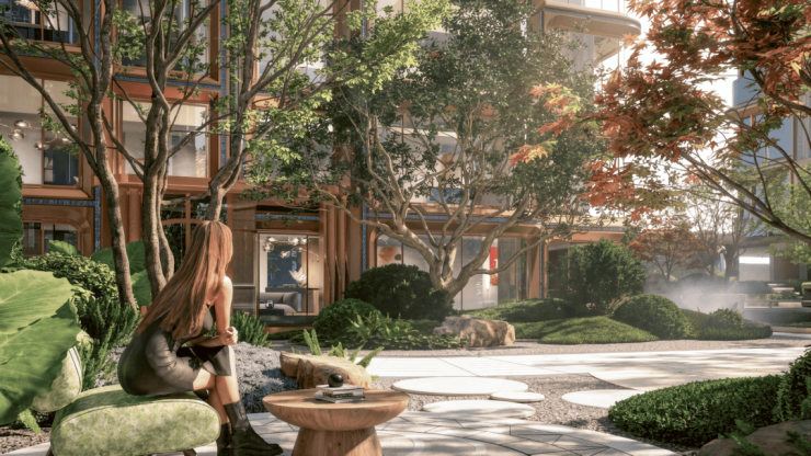 整个社区让业主推窗就是满目绿意,下楼就能拥有森林般的松弛感,真正实现了 “出则滨江繁华,入则森居静谧” 的理想生活。