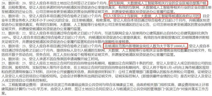 地块所自持60%的办公面积,需在12个月内引进互联网企业入驻并100%全部投入使用,同时需提供新增就业岗位10000人以上。