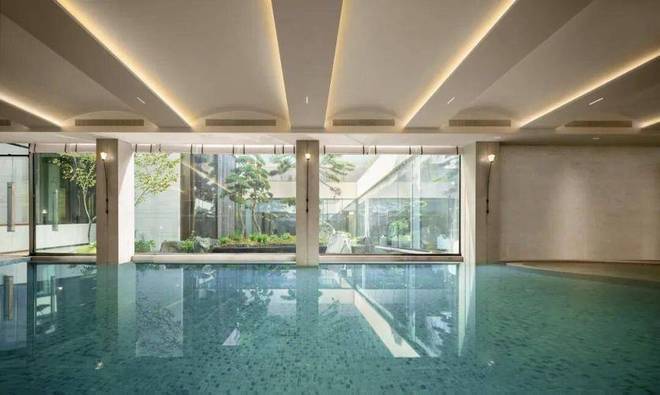 让小胖倍感意外的还有恒温泳池。这个配置,一般常见于单价4、5万/平的楼盘,御潮印不仅超配,且还是秋水山庄同款的无界景观泳池,业主随时来个活力健身,实现一年四季游泳自由。