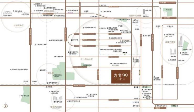 古北99距离15号线吴中路站直线距离约500m,其他还有10号线宋园路站;离内环和中环分别是1.5km、1.2km,离延安路高架也仅2km。
