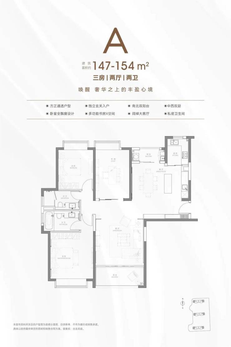 认购开启,一房一价表公示,约134-147-154㎡三房&顶复总价1350万起,机会罕见,不要错过。