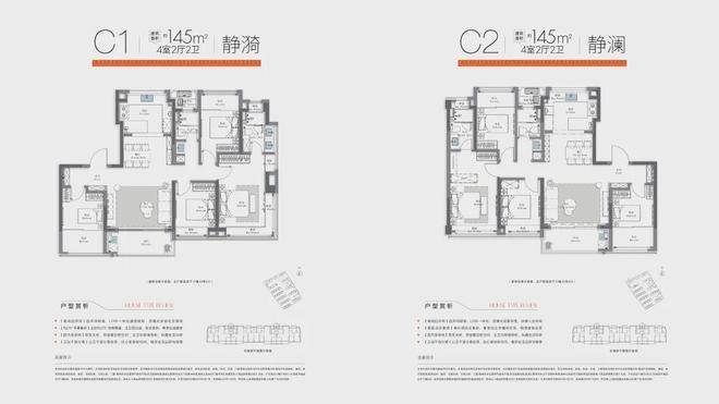 建面约145㎡4房2厅2卫3阳台户型: