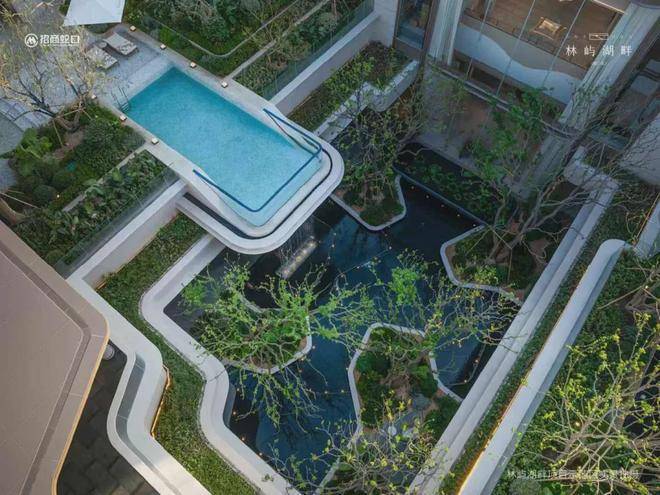 •下沉峡谷:约420㎡丰富层次立体下沉庭院,区域首现悬浮水池,搭配4.3米飞瀑,塑造沉浸式度假感受。