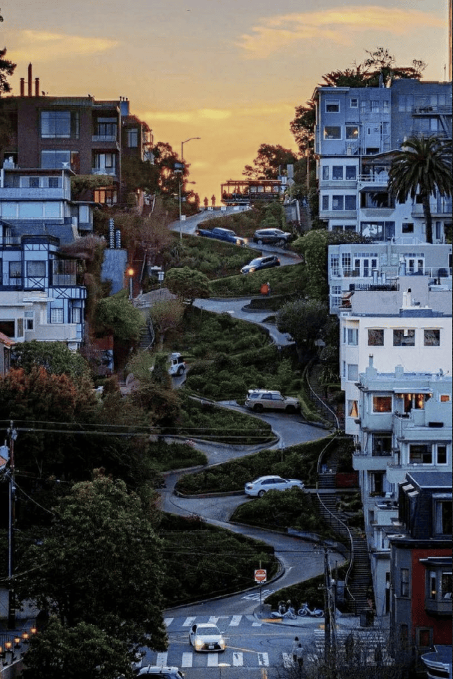 通过多级抬高的坡地,堆坡造园,呈现类似旧金山九曲花街的观感,每一段起伏都是精心设计的场景体验。