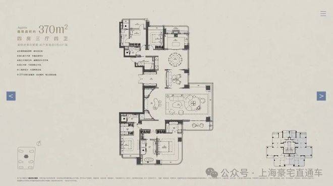 以下为建面约370㎡户型过程稿亮点: