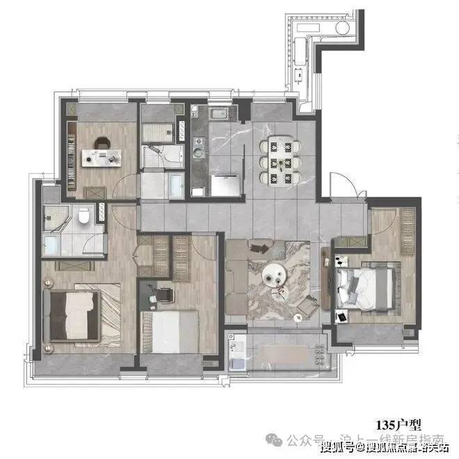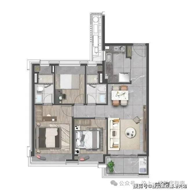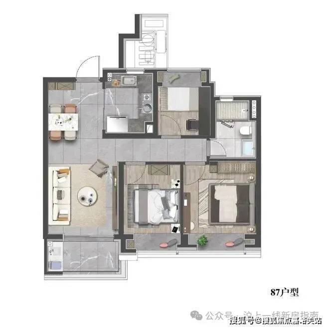 项目规划11栋8-17层小高层,全部坐北朝南、点板结合布局,最大楼间距超60米,保障每户采光与通风。外立面采用银灰铝板+三玻两腔LOW-E玻璃,局部干挂石材到顶,兼具颜值与节能性能(节能指标较普通住宅提升20%)。精装标准堪称顶配:大金VRV-S系列中央空调、德国威能地暖、霍尼韦尔新风系统三大件齐全;厨房西门子五件套、弗兰卡龙头水槽,卫浴杜拉维特智能马桶、汉斯格雅花洒,全屋墙布交付,细节拉满品质感。户型覆盖83㎡2+1房至156㎡四房三卫,得房率76%-80%,全部一梯两户或两梯两户设计,适配从二人世界到三代同堂的全生命周期