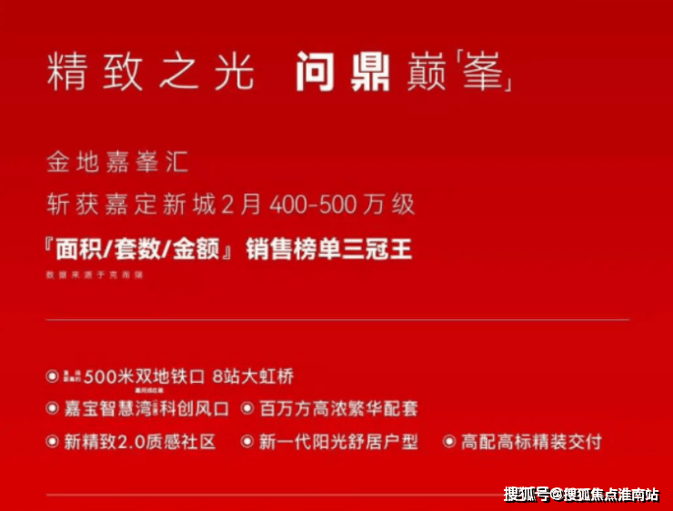 锁定嘉定新城,就不得不拿出一个被反复被提及的项目,它就是堪称“西上海第一盘”、“400万级全能选手”的项目,也是众多购房者用房票证实下的【嘉定新城销售榜单三冠王】——金地嘉峯汇。(嘉定新城2月400-500万级)。