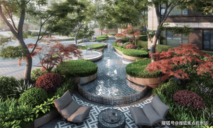 给大家秀一波静安玺樾美学示范区实景图!入口是酒店港湾式落客空间,一棵充满艺术感的造型树,蓝翡翠奢石点缀,提升整体品质感。内部是一座精致典雅的水院,艺术雕塑、喷泉水幕、造型树经典组合,仿若一座海派艺术公园~