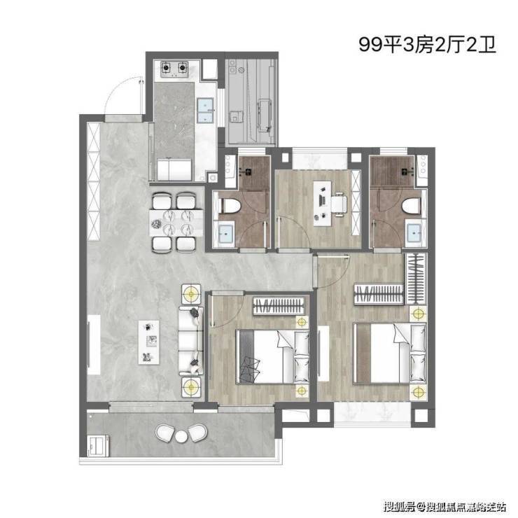 大面积的套房尺度,大尺度进深、从容有余的居住空间,奢阔飘窗、独立卫浴配置,打造尊崇的奢雅体验。百平米内的不将就三房,实现房间数量及空间尺度的均好平衡。