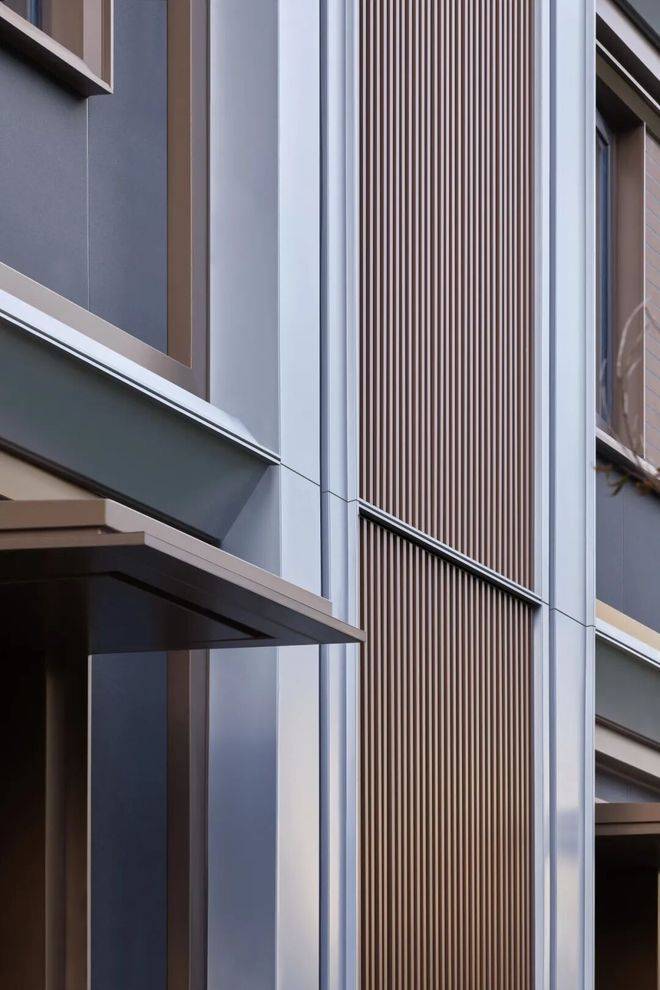 大量使用型材来提升立面的精致度,特别是在斜切面的折边处,确保了细节处理得当。通过材质划分和线条化处理,使得立面在不同的光照条件下呈现出丰富的光影变化。