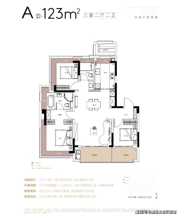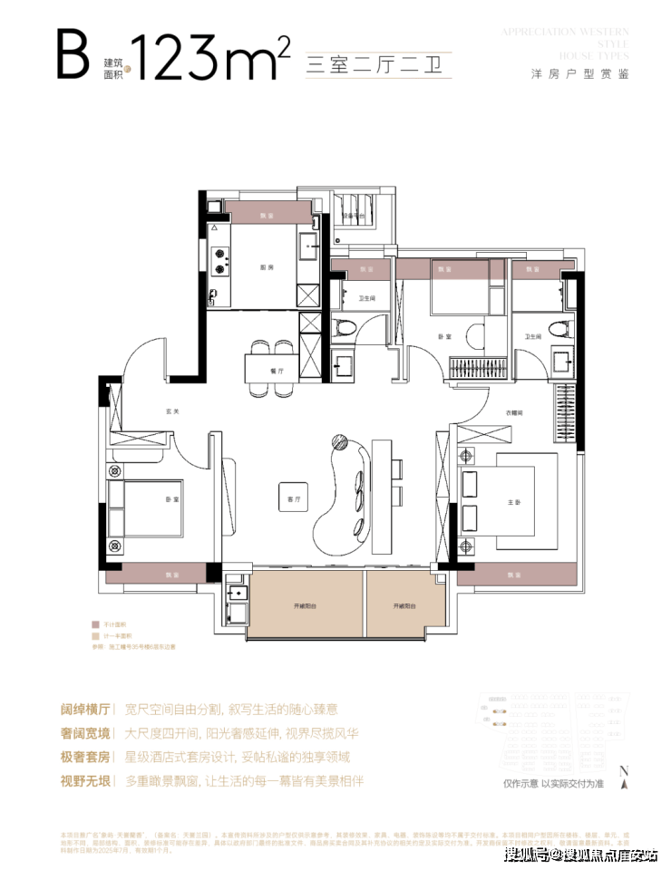 建面约123㎡坚厅户型,3房2厅2卫: